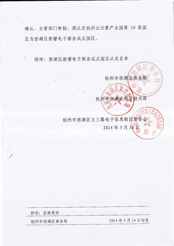 2014年5月14日,西湖區商務局、西湖區科技局和西湖區文三路電子信息街區管委會聯合發文,中大銀座入選西湖區新增電子商務園區。